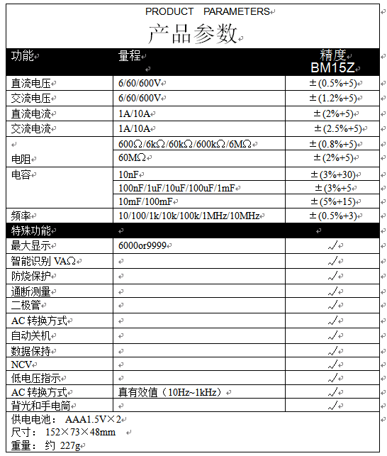 產品展示 新品推薦 數字鉗形表 濱江鉗形表 漏電流鉗形表 數字多用表 絕緣電阻表 接地電阻測試儀 紅外測溫儀 數字溫度計 其它 產品展示 > 數字多用表 > 立即購買 價格 ¥85 配送:快遞免運費 | 48小時內發(fā)貨 說明書下載 BM15Z智能小多用表 返回